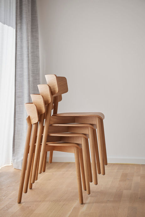 Mit größter Sorgfalt in Deutschland gefertigt, überzeugt dieser stapelbare Stuhl durch seine praktische Handhabung und ist in drei verschiedenen Holzarten erhältlich.